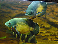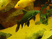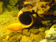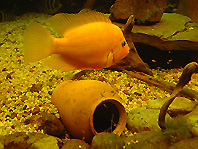 Winkelstahl 5x5 cm Schenkellänge mit den Außenmaßen Zu dritt hatten wir Müh und Not, die Scheibe einzusetzen. ( 190 x 80 cm und 19 mm stark) 3 Tuben Silicon habe ich zur Abdichtung benötigt. Dann endlich " Wasser marsch " Oh je da muss wohl ein Loch sein, nein 2 oder 3? Nachdem ich 12 Löcher geflickt hatte glaubte ich schon gar nicht mehr an einem Erfolg. Doch dann war es endlich soweit, im Oktober ließ ich das Wasser einlaufen. Nach einer Woche war alles noch OK. Die Löcher waren also alle geschlossen. Ich kann nur jedem empfehlen, der so was bauen möchte, nehmt niemals eine Folie, die schon mal benutzt wurde wenn es auch nur kurz war. Nun ging es ans Einrichten, Badehose an und los. (Anmerkung von Gerd: "Ich wusste der wollte nur heimlich einen Swimmingpool bauen.") Für den mittleren Teil nahm ich 5 mm Kies und für den vorderen Teil flache Kieselsteine, 3 Amphoren und ein paar Wurzeln. Als Beleuchtung 2 x T8 Röhren mit 54 Watt und 2 x T5 Röhren mit jeweils 80 Watt. Zur Filterung benutze ich einen Teichfilter von Oase, Biotec + UV-Lampe, betrieben mit einer Oase-Pumpe mit 3500 lt.. Leistung. Der Kellerraum ist beheizt, sonst währe die Luftfeuchtigkeit zu hoch. meine Fische hatten sichtlich Freude als ich sie vom 840 lt.. Becken in das große Becken umsetzte. Demnächst muss ich nur noch einen höheren Rand aufsetzen, denn bei der Fütterung muss ich mich gleich vom Becken zurück ziehen, sonst werde ich nass. Die Oskar sind jetzt 25 cm und fressen mir aus der Hand. Die Citrinellum sind recht wild und haben auch schon abgelaicht. Damit sie sich nicht so stark vermehren habe ich 3 Feueraale eingesetzt. bei den Gippicps kann man zusehen wie sie wachsen. Ich hoffe, dass mein erfolgreicher Versuch ein solches Becken zu bauen bei anderen Aquarianer Anregung findet.